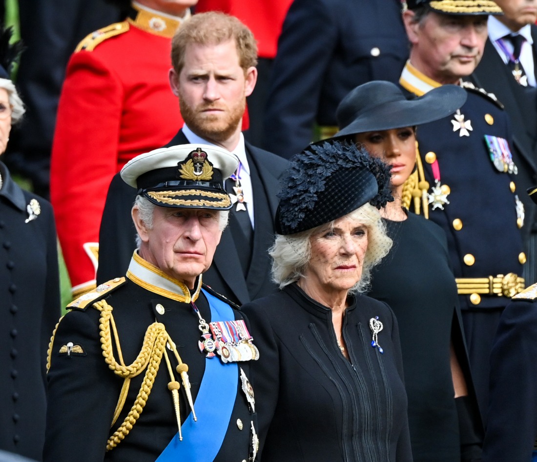 - King Charles III, the Queen Consort in front of the Duke and Duchess of Sussex during the State Funeral of Queen Elizabeth II, held at Westminster Abbey, London.,Image: 724154193, License: Rights-managed, Restrictions: -, Model Release: no, Credit line: Gareth Fuller / Avalon