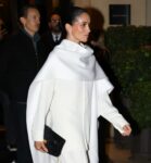 - Paris, FRANCE Meghan Markle was seen leaving her hotel on her way to the Balenciaga show during Paris Fashion Week, wearing a stylish white oversized cape over a white button-down shirt. She paired it with black pointed-toe heels and simple accessories, giving off a vibe of effortless elegance, topped off with a sleek, slicked-back bun. Pictured: Meghan Markle BACKGRID USA 4 OCTOBER 2025 BYLINE MUST READ: Aissaoui Nacer / BACKGRID USA: +1 310 798 9111 / usasales@backgrid.com UK: +44 208 344 2007 / uksales@backgrid.com *UK Clients – Pictures Containing Children Please Pixelate Face Prior To Publication*