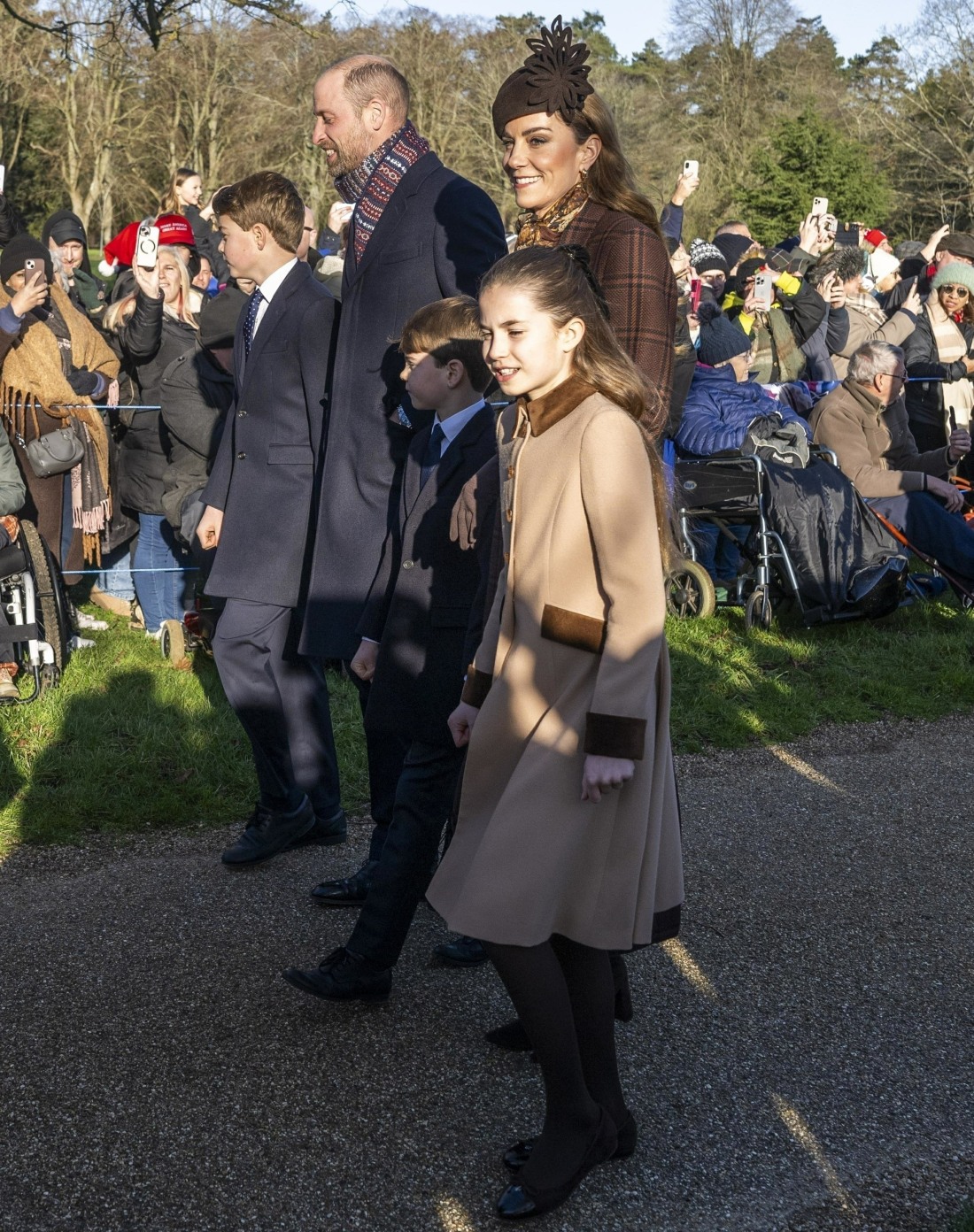 - Sandringham, UNITED KINGDOM Members of the British Royal Family attend the Christmas Morning Service at St Mary Magdalene Church in Sandringham, Norfolk. Pictured: Prince William, Prince of Wales, Prince Louis, Princess Charlotte and Catherine, Princess of Wales, BACKGRID USA 25 DECEMBER 2025 USA: +1 310 798 9111 / usasales@backgrid.com UK: +44 208 344 2007 / uksales@backgrid.com *UK Clients – Pictures Containing Children Please Pixelate Face Prior To Publication*