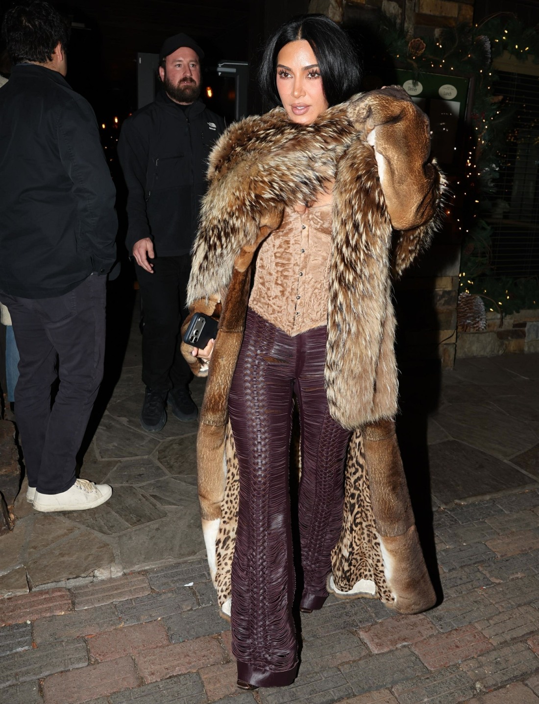 - Aspen, CO Kim Kardashian looks stylish bundled up in fur as she was spotted exiting the Prada Store in Aspen after shopping. Pictured: Kim Kardashian BACKGRID USA 1 JANUARY 2026 USA: +1 310 798 9111 / usasales@backgrid.com UK: +44 208 344 2007 / uksales@backgrid.com *UK Clients – Pictures Containing Children Please Pixelate Face Prior To Publication*