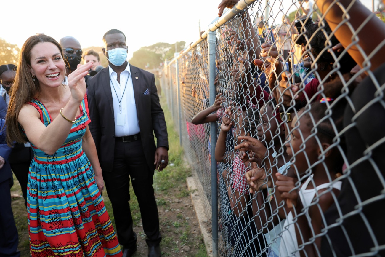 - North America Rights Only – Kingston, Jamaica -20220322- Prince William and Catherine Duchess of Cambridge meet locals during a visit Trench Town, the birthplace of reggae in Kingston, Jamaica, on day four of their tour of the Caribbean on behalf of the Queen to mark her Platinum Jubilee. -PICTURED: Catherine Duchess of Cambridge -PHOTO by: Chris Jackson/PA Images/INSTARimages.com Disclaimer: This is an editorial, rights-managed image. Please contact INSTAR Images for licensing fee and rights information at sales@instarimages.com or call +1 212 414 0207. This image may not be published in any way that is, or might be deemed to be, defamatory, libelous, pornographic, or obscene. Please consult our sales department for any clarification needed prior to publication and use. INSTAR Images reserves the right to pursue unauthorized users of this material. If you are in violation of our intellectual property rights or copyright you may be liable for damages, loss of income, any profits you derive from the unauthorized use of this material and, where appropriate, the cost of collection and/or any statutory damages awarded For images containing underage children: Be advised that some Countries may have restricted privacy laws against publishing images of underage children. Inform yourself! Underage children may need to be removed or have their face pixelated before publishing