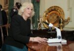 - Queen Camilla looking at a microscope during a reception to mark the findings of a new research study commissioned by The Queen’s Reading Room charity, at Clarence House in London Featuring: Harlan Coben, Donna Tartt, Queen Camilla, Helena Bonham Carter, Dame Joanna Lumley Where: London, United Kingdom When: 26 Mar 2024 Credit: Yui Mok/PA Images/INSTARimages **NORTH AMERICA RIGHTS ONLY**