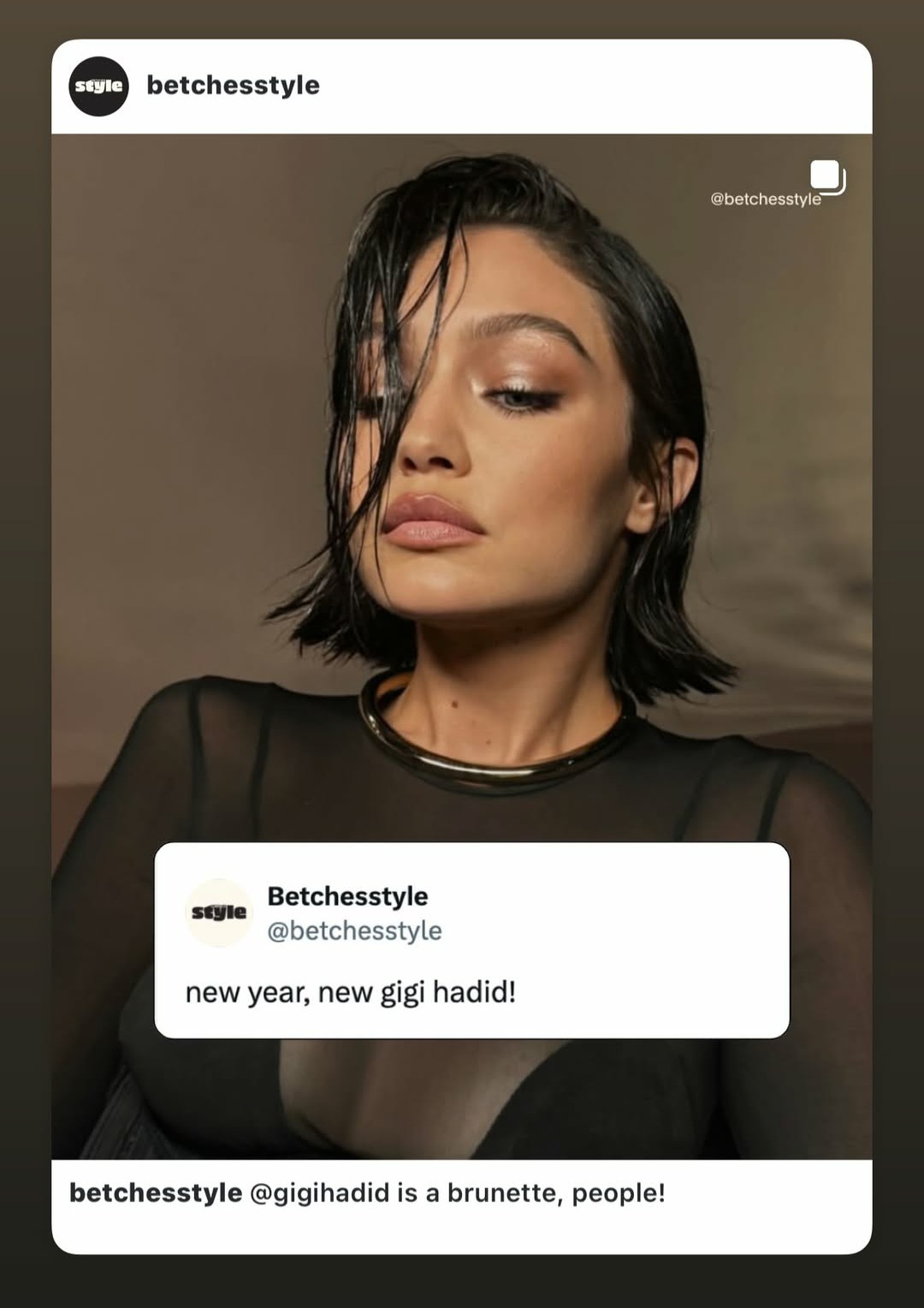 Gigi Hadid dramatically changed her hair & now has a ‘matte black’ bob: Viewing Photo You are viewing the page for a single photo. Click here to return to the post or view more photos in the gallery below << last image next image >> << last image next image >> Return to the post: Gigi Hadid dramatically changed her hair & now has a ‘matte black’ bob