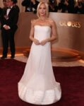Dakota Fanning wore Vivienne Westwood, and this is a pretty classic Westwood design/silhouette. The dress itself is lovely but I think this muted color does Dakota no favors. I think both Fanning sisters feel like their coloring is so fair, they need to stick with lighter colors, but I wish they would go bolder. It looks like Dakota is wearing a sparkly flesh dress.