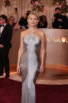 Kate Hudson was in this cool flapper-looking silver Armani with rows of draped sequins. The design of this is exquisite but something is off about the execution. Kate was nominated for Best actress – musical or comedy for Song Sung Blue, which went to Rose Byrne.