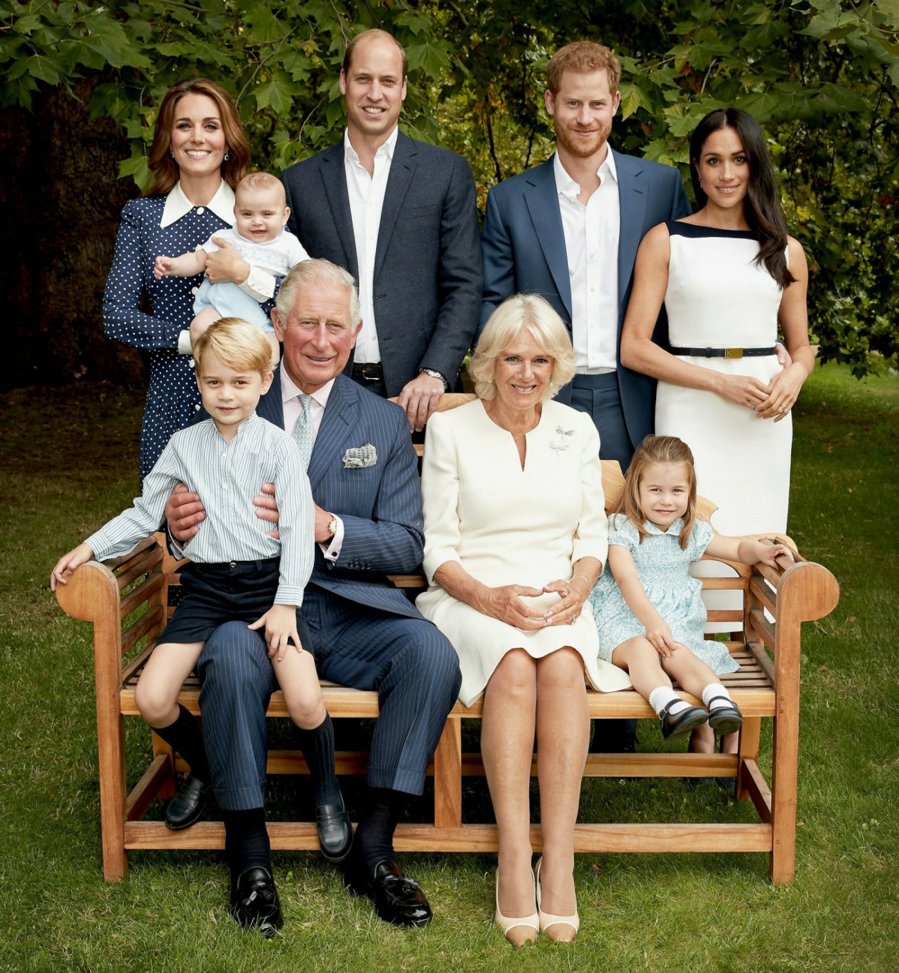 - (Strictly for editorial use only and available until December 12th 2018) In this handout image provided by Clarence House, HRH Prince Charles Prince of Wales poses for an official portrait to mark his 70th Birthday in the gardens of Clarence House, with Their Royal Highnesses Camilla Duchess of Cornwall, Prince Willliam Duke of Cambridge, Catherine Duchess of Cambridge, Prince George, Princess Charlotte, Prince Louis, Prince Harry Duke of Sussex and Meghan Duchess of Sussex, on September 5, 2018 in London, England.