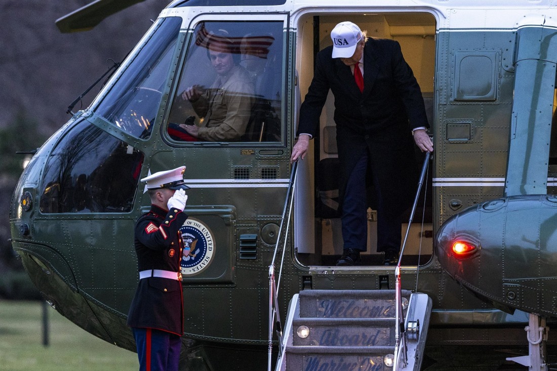 - Washington, DIST Marine One with United States President Donald J. Trump aboard comes in for a landing on the South Lawn of the White House in Washington, DC. President Trump was traveling to Detroit, Michigan, where he toured a plant and delivered remarks at the Detroit Economic Club. Pictured: Donald Trump BACKGRID USA 13 JANUARY 2026 BYLINE MUST READ: MediaPunch / BACKGRID USA: +1 310 798 9111 / usasales@backgrid.com UK: +44 208 344 2007 / uksales@backgrid.com *UK Clients – Pictures Containing Children Please Pixelate Face Prior To Publication*
