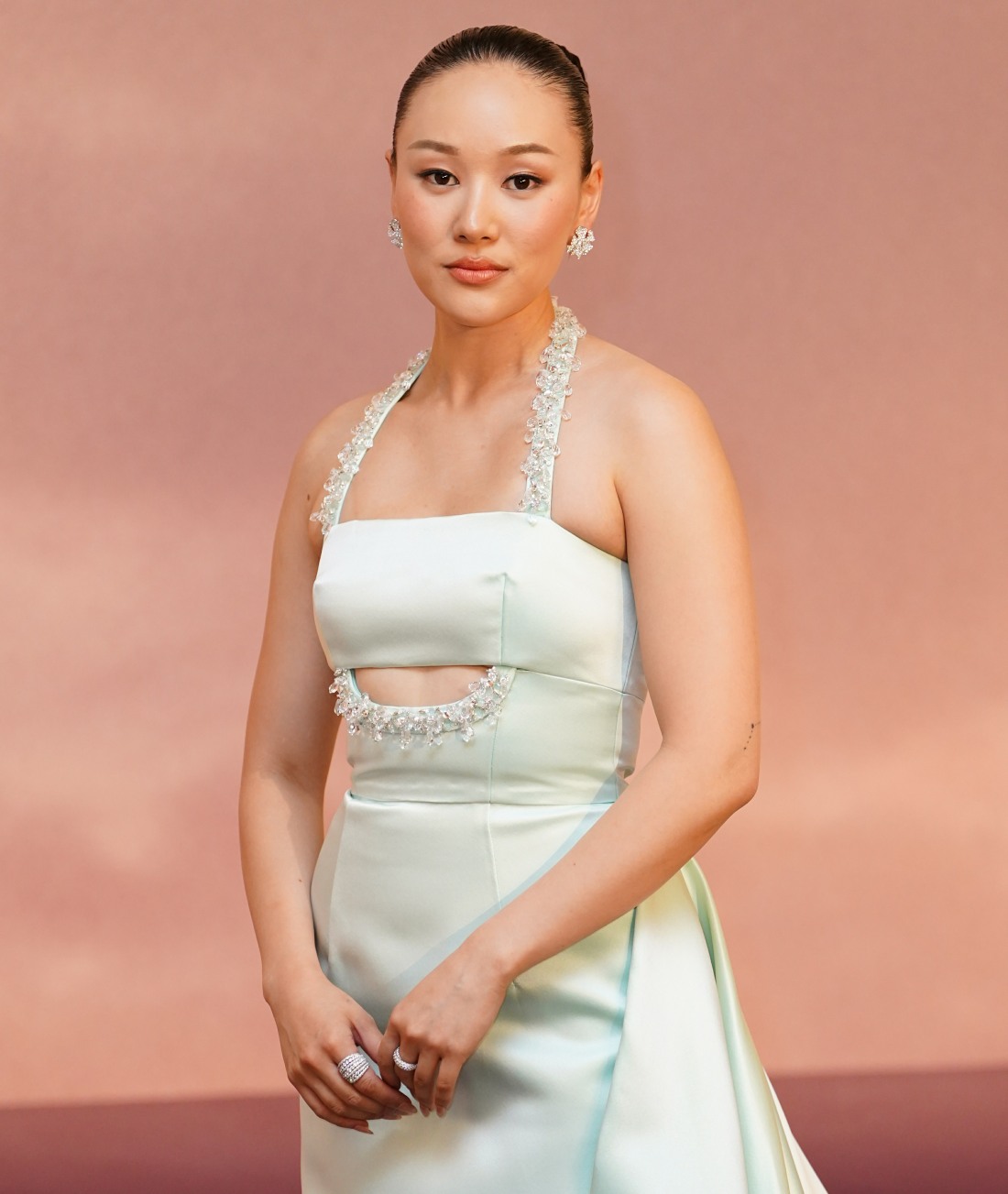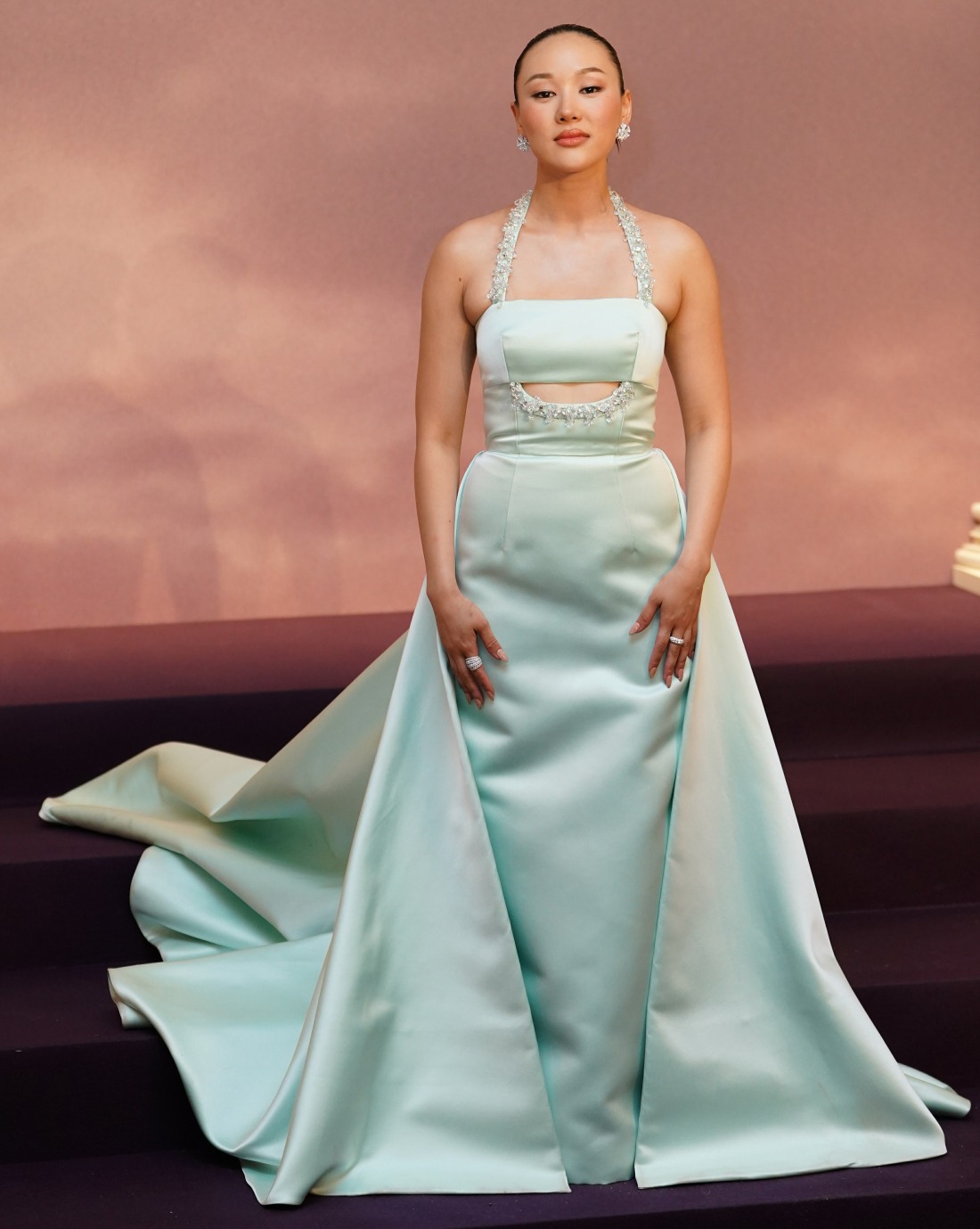 Yerin Ha wore an ice-blue Prada gown for the premiere. It’s because of the connection to Cinderella’s ballgown in the Disney animated film, right? Because this season is a Cinderella story, complete with wicked stepsisters, I believe. Yerin is already part of a big PR push, and British Vogue had a nice interview with her as she was getting ready for this premiere.