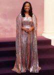 She’s beautiful, but it’s very prom for high end, and it’s too tight in the torso (I bet she had skin indents after). I will say it does feel like Bridgerton, though. It’s also not as bad as that purple dress, though. Look how lazy that fit and lay is. It might just be the wrong size, but even the material looks thin and cheap. Crazy that people still buy these goods. Shonda is who made out best here.