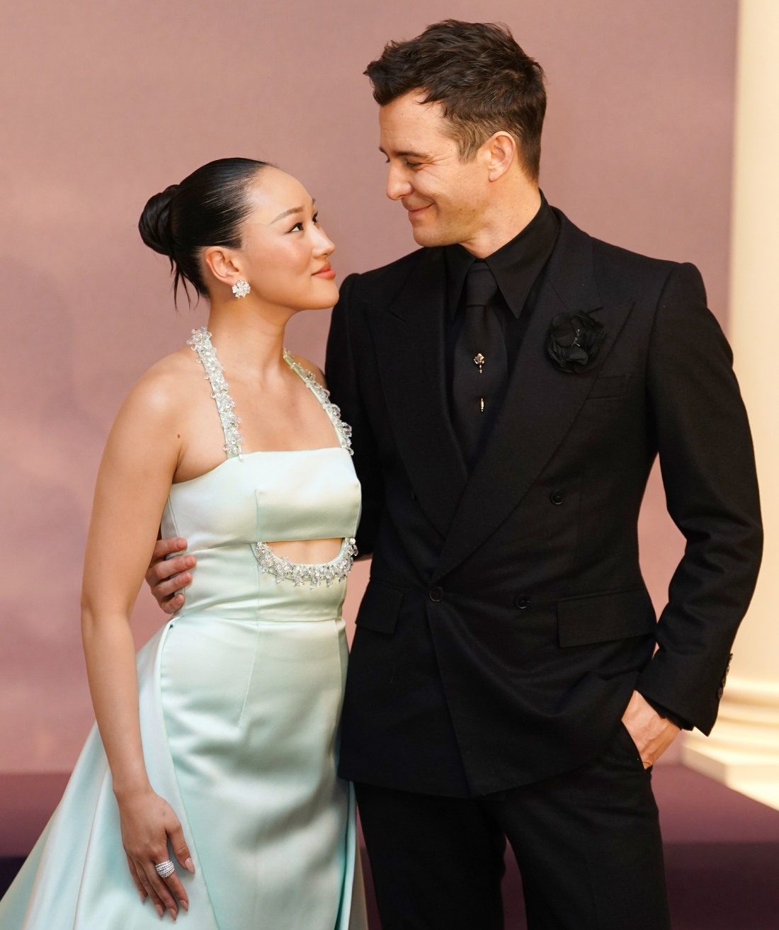 Last night in Paris, Netflix hosted the world premiere of Bridgerton’s Season 4. S4 Part 1 comes out on January 29, and then Part 2 comes out on February 26. This season is based on the book An Offer from a Gentleman, which is where Benedict Bridgerton falls for the maid, Sophie Beckett. Benedict is played by Luke Thompson and Sophie is played by newcomer Yerin Ha. For last night’s premiere, Luke and Yerin posed together and they actually look like they have some nice chemistry. Nothing will ever beat Simone Ashley and Jonathan Bailey’s chemistry though!