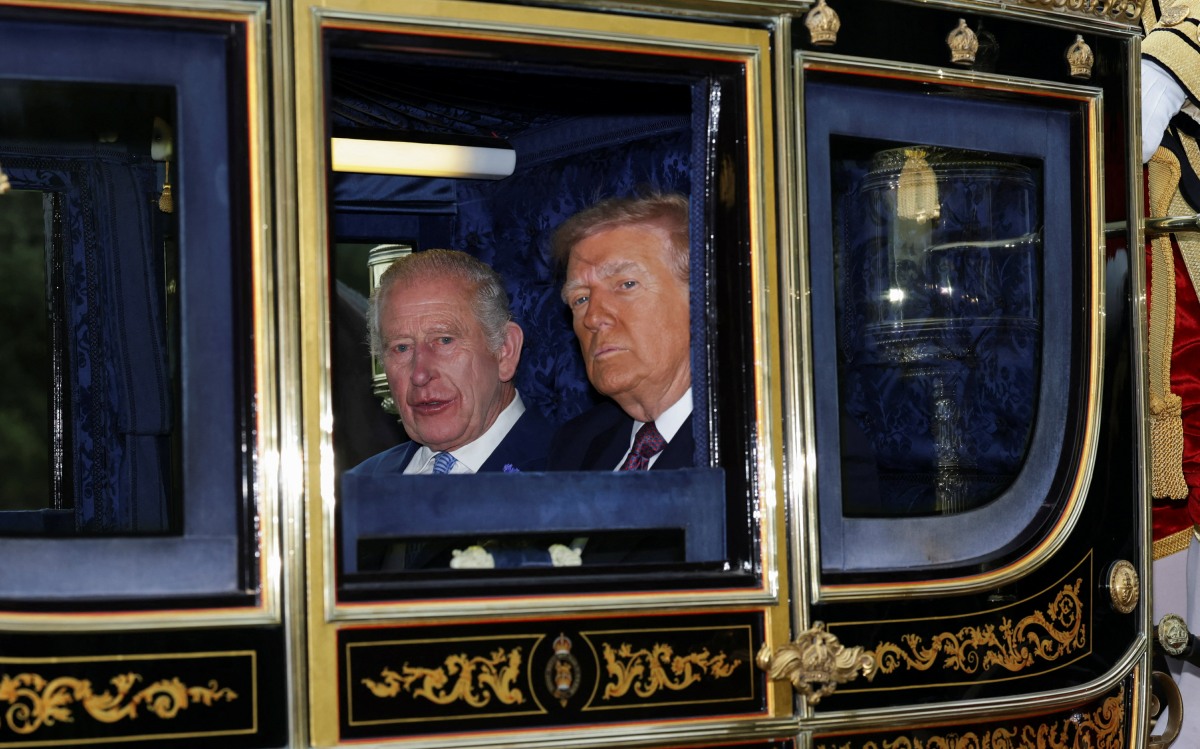 - Britain’s King Charles and U.S. President Donald Trump sit in a carriage during a procession through Windsor Castle, in Windsor, Britain, September 17, 2025.,Image: 1038093448, License: Rights-managed, Restrictions: *** NO UK USE FOR 48 HRS ***, Model Release: no, Credit line: Toby Melville/Avalon