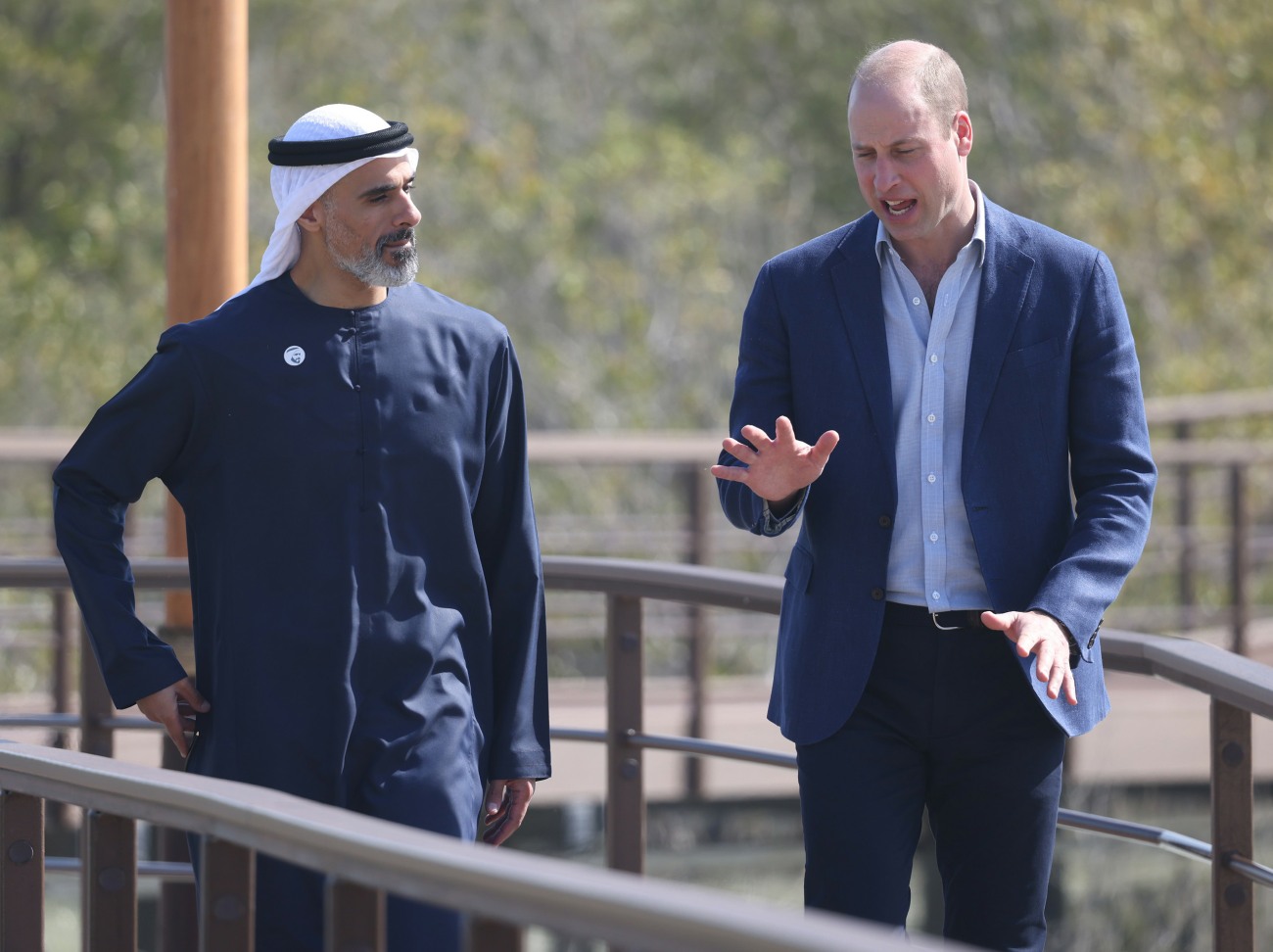 - North America Rights Only – Abu Dhabi, United Arab Emirates -20220210- The Duke of Cambridge talks to Sheikh Khaled bin Mohamed bin Zayed Al Nahyan, Chairman of the Abu Dhabi Executive Office, during his visit to Abu Dhabi’s wetlands at the Jubail Mangrove Park to learn more about the UAE’s efforts to protect the regional flora and fauna from human and environmental challenges, particularly as the country’s urban centres continue to grow and develop, as part of his tour of the United Arab Emirates. -PICTURED: Prince William and Sheikh Khaled bin Mohamed bin Zayed Al Nahyan -PHOTO by: Ian Vogler/Daily Mirror/PA Images/INSTARimages.com Disclaimer: This is an editorial, rights-managed image. Please contact INSTAR Images for licensing fee and rights information at sales@instarimages.com or call +1 212 414 0207. This image may not be published in any way that is, or might be deemed to be, defamatory, libelous, pornographic, or obscene. Please consult our sales department for any clarification needed prior to publication and use. INSTAR Images reserves the right to pursue unauthorized users of this material. If you are in violation of our intellectual property rights or copyright you may be liable for damages, loss of income, any profits you derive from the unauthorized use of this material and, where appropriate, the cost of collection and/or any statutory damages awarded For images containing underage children: Be advised that some Countries may have restricted privacy laws against publishing images of underage children. Inform yourself! Underage children may need to be removed or have their face pixelated before publishing