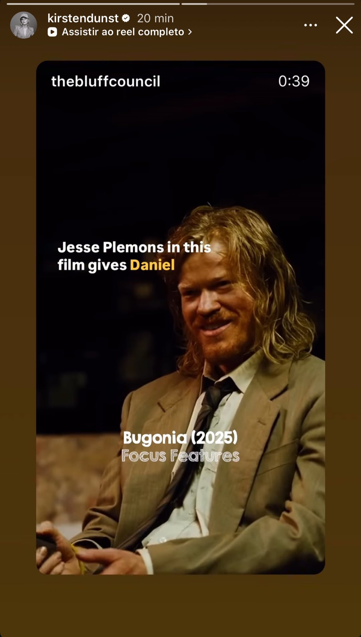 Dunst first reposted an Instagram Story from one of Plemons’ Bugonia costars, comedian Stavros Halkias, that showed him with a stern look on his face and a photoshopped hand pointing a gun at the camera. Its caption read, “Me to everyone who didn’t nominate Jesse Plemmons [sic] for Best Actor tho.”