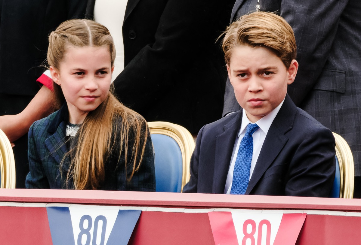 - Princess Charlotte and Prince George seen near the Queen Victoria Memorial to view the VE80 Celebration Parade on Monday 5 May 2025 at Buckingham Palace, London. . Picture,Image: 995388031, License: Rights-managed, Restrictions: World Rights – Julie Edwards/Avalon.Red, Model Release: no, Credit line: Julie Edwards/Avalon