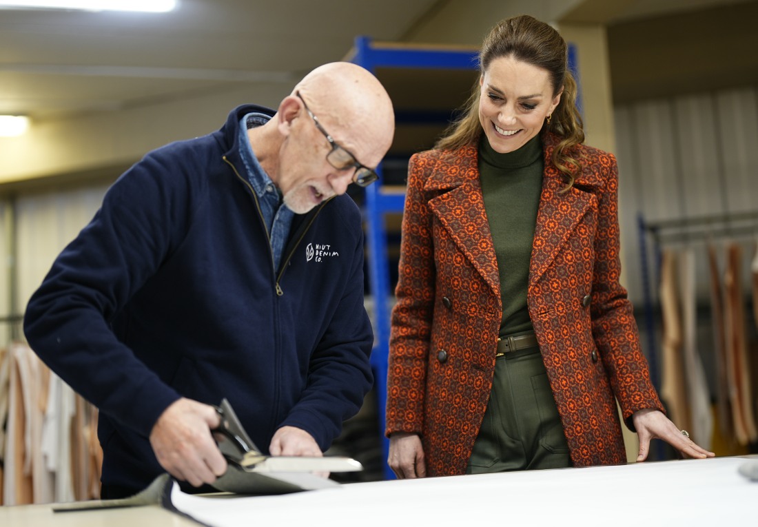 Here are more photos from the Princess of Wales’s visit to Pembrokeshire, Wales on Tuesday. She visited yet another fabric mill, and she visited Hiut Denim. Hiut Denim was a smaller Welsh brand, and then Meghan Markle/the Duchess of Sussex wore a pair of their jeans in 2018. Meghan put the brand on the map and they were backordered for months after she wore their jeans. The Meghan Effect, and eight years later, you-know-who is trying to bandwagon.