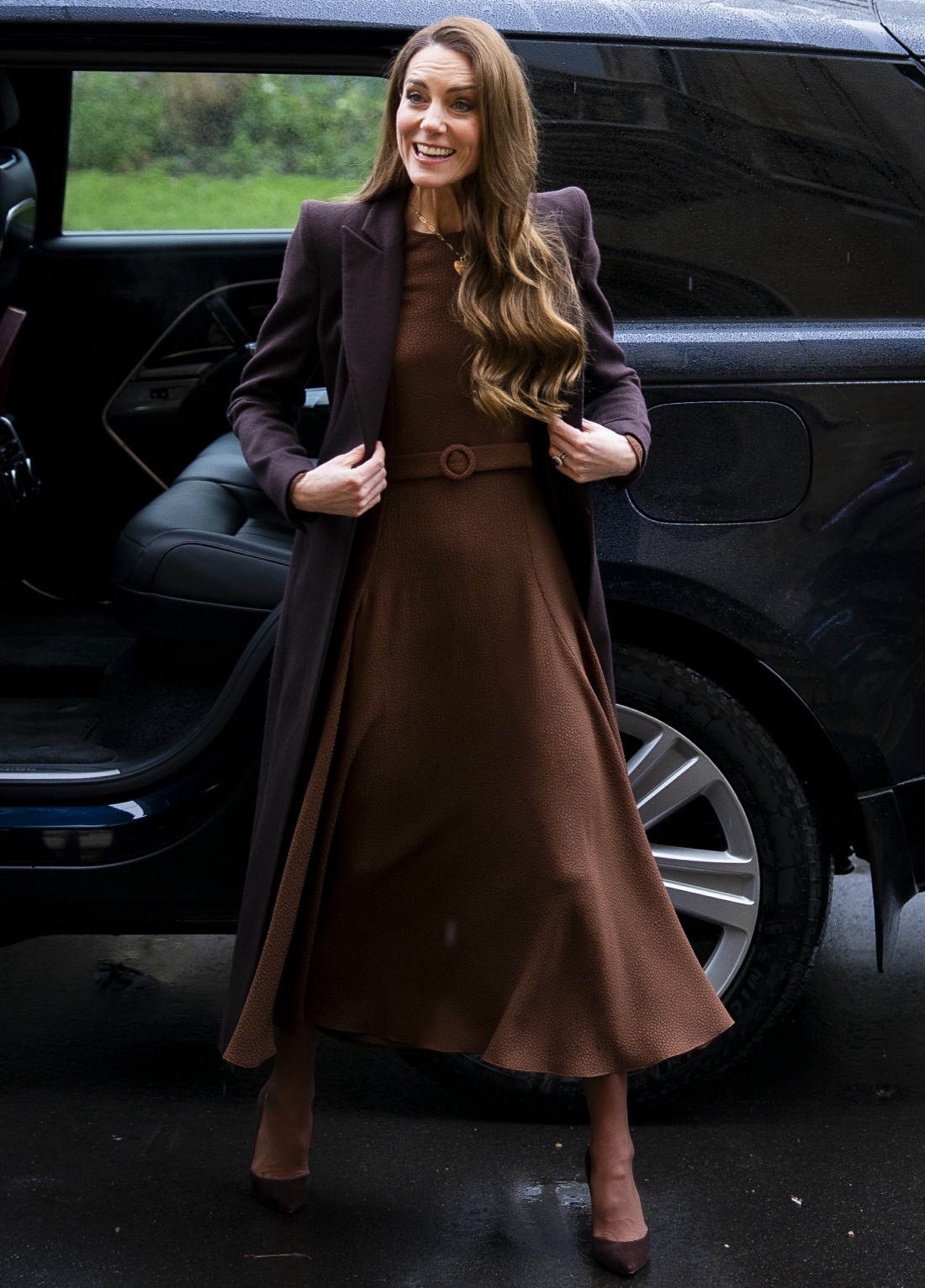 Princess Kate wore a new(ish) ensemble – her coat, with those terrible shoulders, is apparently a bespoke Catherine Walker, and she likely has this same coat in different colors. Kate wore a new Edeline Lee dress, which has one of her favorite silhouettes. There were lots of comments about Kate “copying” the Duchess of Sussex’s many brown/chocolate ensembles. You can definitely see the Meghan inspo, but Kate put her own keen/dated/Edwardian spin on it. The Mail is also making a big deal about Kate wearing a new-to-us necklace. This is from Daniella Draper and it retails for £1,555. Can’t believe the Mail refused to tally the cost of ALL of Kate’s jewelry here, like they do every time Meghan breathes or posts an Instagram. Let me also say something nice about Kate’s necklace: while I think the piece is rather gaudy, I appreciate the fact that theme-dresser Kate didn’t wear a crucifix necklace for this meeting. There’s no need to pretend that Kate and William are super-religious, and I appreciate that they aren’t draping themselves in religious gear.