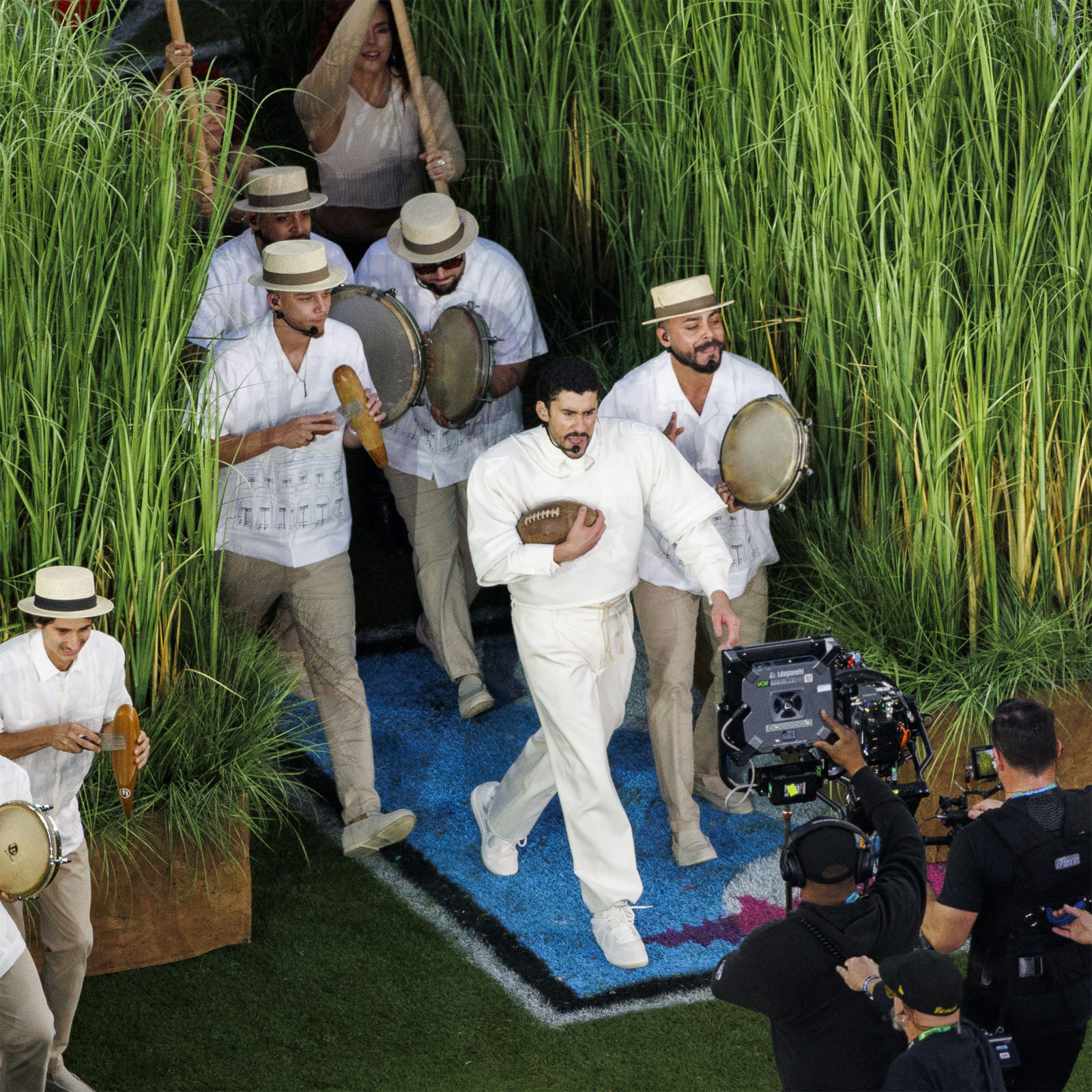 Some of the biggest stars to emerge from this year’s Super Bowl halftime show never even showed their faces on camera. They were the ones who dressed as bunches of grass to transform a football stadium into the sugarcane fields of Puerto Rico.