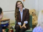 Anyway, Kate’s surprise event today was in honor of Children’s Mental Health Week, and her visit was part of her Place2Be patronage. As for her ensemble… slim-cut pants in black, a mismatched brown blazer and a blue button-down. Sensible shoes, at least. I like her blue shirt, but her new love of brown clothing is not great. Many of you suspect that she’s wearing more brown these days because the Duchess of Sussex has always worn a lot of brown. Could be. I wish Kate would make more of an effort to coordinate her colors. Tatler notes that Kate wore a pair of blue topaz earrings from Kiki McDonough. And she’s making sure the kids see that she’s wearing Big Blue.