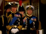 - Britain’s King Charles III (front R), Britain’s Prince Andrew, Duke of York, and Britain’s Prince Edward, Earl of Wessex arrive to mount a vigil around the coffin of Queen Elizabeth II, draped in the Royal Standard with the Imperial State Crown and the Sovereign’s orb and sceptre, lying in state on the catafalque in Westminster Hall, at the Palace of Westminster in London on September 16, 2022, ahead of her funeral on Monday. – Queen Elizabeth II will lie in state in Westminster Hall inside the Palace of Westminster, until 0530 GMT on September 19, a few hours before her funeral, with huge queues expected to file past her coffin to pay their respects.,Image: 723508432, License: Rights-managed, Restrictions: , Model Release: no, Credit line: DANIEL LEAL / Avalon