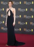 Here are some fashion photos from last night’s BAFTAs. All of the ladies in this post are wearing Louis Vuitton, and most of them are brand ambassadors for LV. I’m about to share a treasury of fashion and film hot takes, so buckle up. First up, Emma Stone. Louis Vuitton gave their Oscar-winning brand ambassador a simple, slinky black dress. Emma’s whole vibe this awards season has been “it’s not my year, y’all don’t have to pay much attention to me.” She’s doing that because people had feelings about her last Oscar win, for Poor Things. My take: she totally deserved the Oscar for Poor Things, and she totally deserves her nominations this year for Bugonia. She’s absolutely insane in Bugonia, and I kind of think she should be a bigger part of the Best Actress conversation for it. I also think LV should work harder on their looks for Emma.