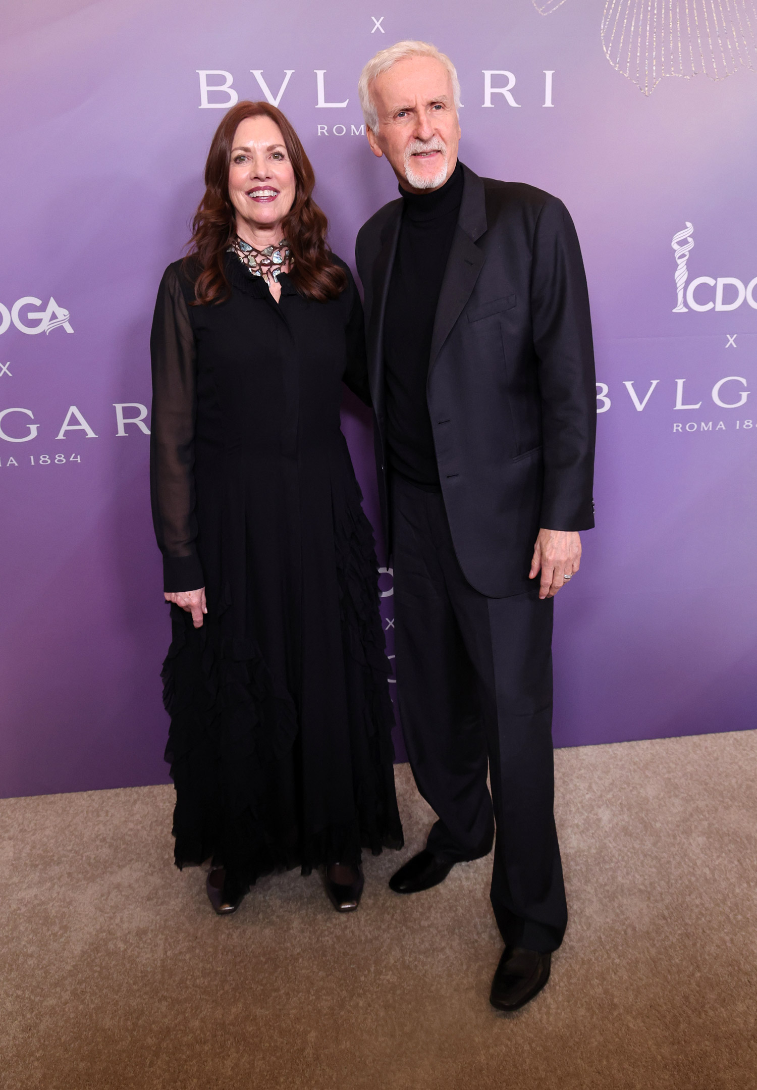 James Cameron is shown at the Costume Designers Guild Awards earlier this month with costume designer Deborah Lynn Scott credit: Sadou Faye/Avalon. He’s also shown at the European Avatar: Fire and Ash premiere. Credit: Thomas Floyd/Avalon