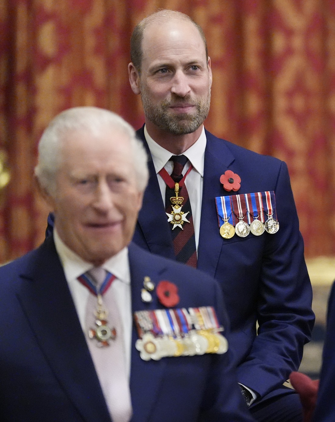 - King Charles III and the Prince of Wales at a reception for veterans who served in the Pacific during the Second World War, part of the commemorations marking the 80th anniversary of VJ Day, at Windsor Castle, Berkshire. Picture date: Tuesday November 11, 2025.,Image: 1051874448, License: Rights-managed, Restrictions: *** NO UK USE FOR 48 HRS ***, Model Release: no, Credit line: Andrew Matthews/Avalon