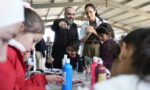 For the outing – their second of the day after attending a roundtable discussion in Amman with people from the United Nations and many of its agencies, diplomatic representatives and donors – Meghan ditched her all-white suit for a more casual look. The mother-of-two opted for a pair of wide-leg high-waisted trousers, cinched at the waist with a belt and a matching short sleeved T-shirt, as well as a white shirt which acted as a jacket when the former actress was in the class.