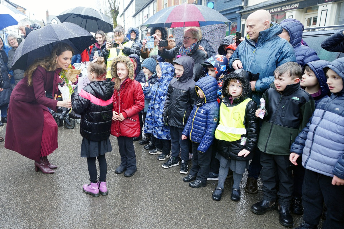 Here are more photos of the Prince and Princess of Wales in Powys, Wales yesterday. They went to Wales to celebrate St. David’s Day, which is on March 1st. I still believe that they went to Wales a few days before St. David’s Day because they didn’t want to “work” two weekends in a row, given that the actual holiday falls on Sunday this year. Still, Prince William and Kate’s merry band of crisis managers had to work extra hard this week. Not only did Will & Kate’s office manage to throw a days-long tantrum about Prince Harry & Meghan’s Jordanian trip, but their office was also extremely heavy-handed in how they pushed this trip to Wales. There was no booing, y’all! Don’t put it in the newspaper that Will and Kate got booed, because they did NOT. The reason they did not get booed is because this visit was unannounced, and their staff stage-managed it so that local children had to stand out in the pouring rain for Will & Kate’s dumb photo-op.