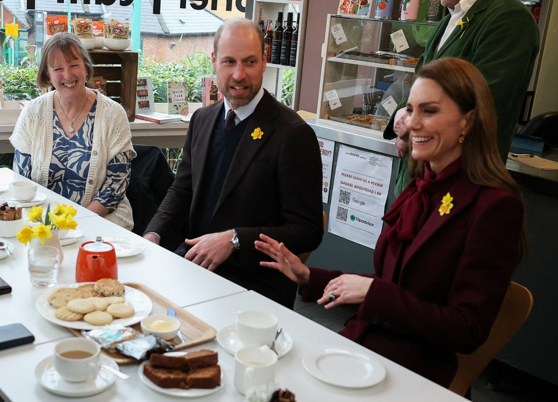 - Britain’s William, Prince of Wales, and Catherine, Princess of Wales, sit in a cafe which is part of the Oriel Davies gallery, a public contemporary art gallery, as they visit a project funded by the Alexandra Reinhardt Memorial Award, focused on supporting the well-being of the children and young people in the local area, in Newtown, Wales, Britain, February 26, 2026.,Image: 1078476677, License: Rights-managed, Restrictions: *** NO UK USE FOR 48 HRS ***, Model Release: no, Credit line: Phil Noble/Avalon
