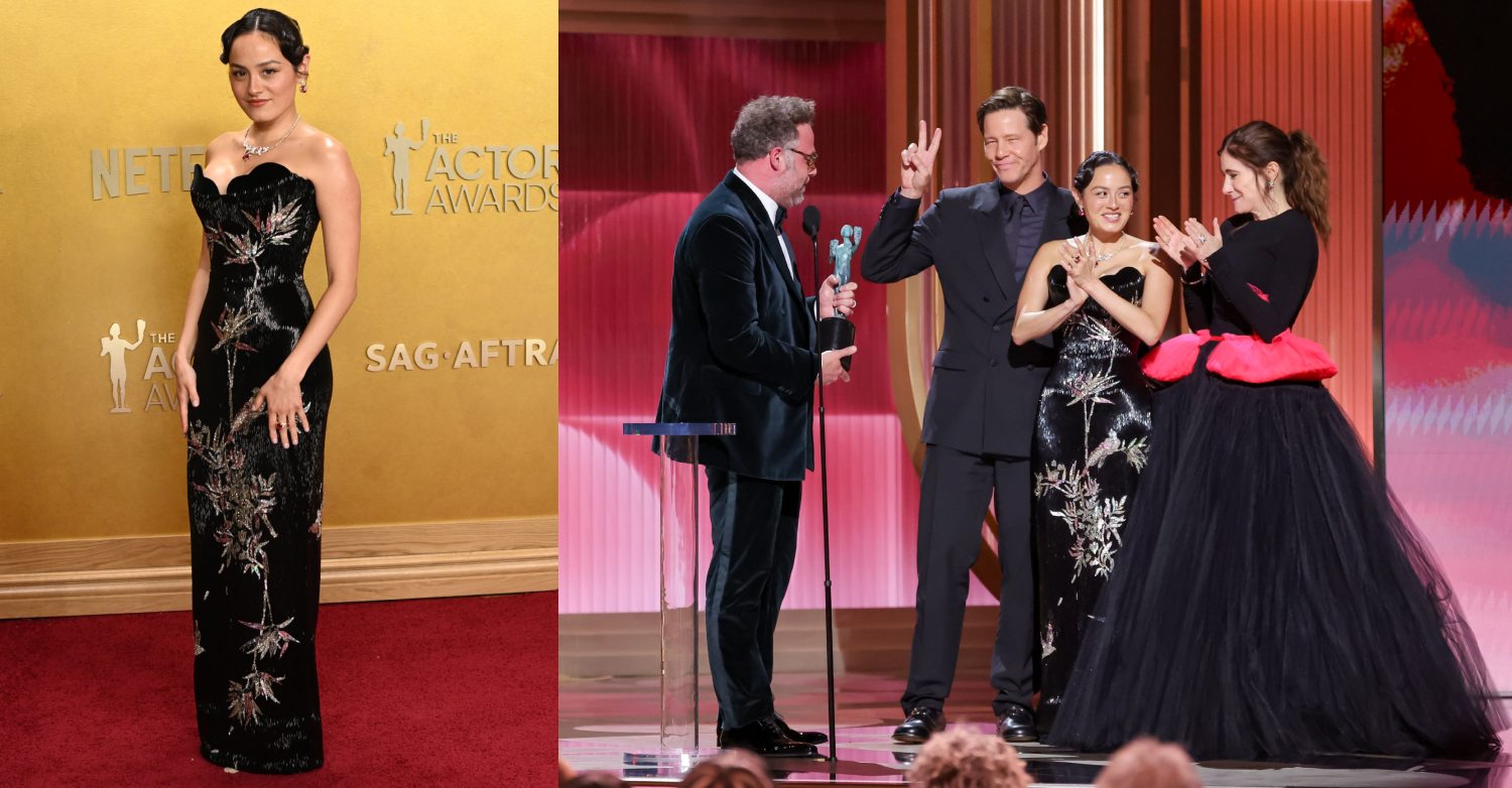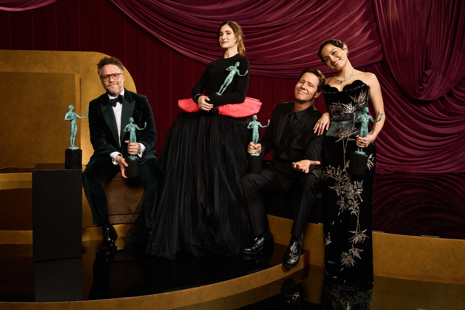 The Studio’s Chase Sui Wonders slayed in a strapless Miss Sohee gown with leaf-like sequins. I learned during Seth Rogen’s acceptance speech that they do this show in single takes?! I hope he was just talking about their episode about that, The Oner, which may be the case. That episode was so stressful. I like this show but I find it hard to take.