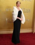 Sarah Catherine Hook (from The White Lotus) also wore Balenciaga – this is actually my favorite of the Balenciaga dresses from the SAGs, but I don’t like the gloves with the dress.