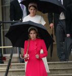 - London, UK, 21 May 2024: Princess Eugenie (in red) and Princess Beatrice (in white) arrive for the Royal Garden Party organised by King Charles III at Buckingham Palace in London.,Image: 875182415, License: Rights-managed, Restrictions: *** NO UK USE FOR 48 HRS ***, Model Release: no, Credit line: Yui Mok / Avalon