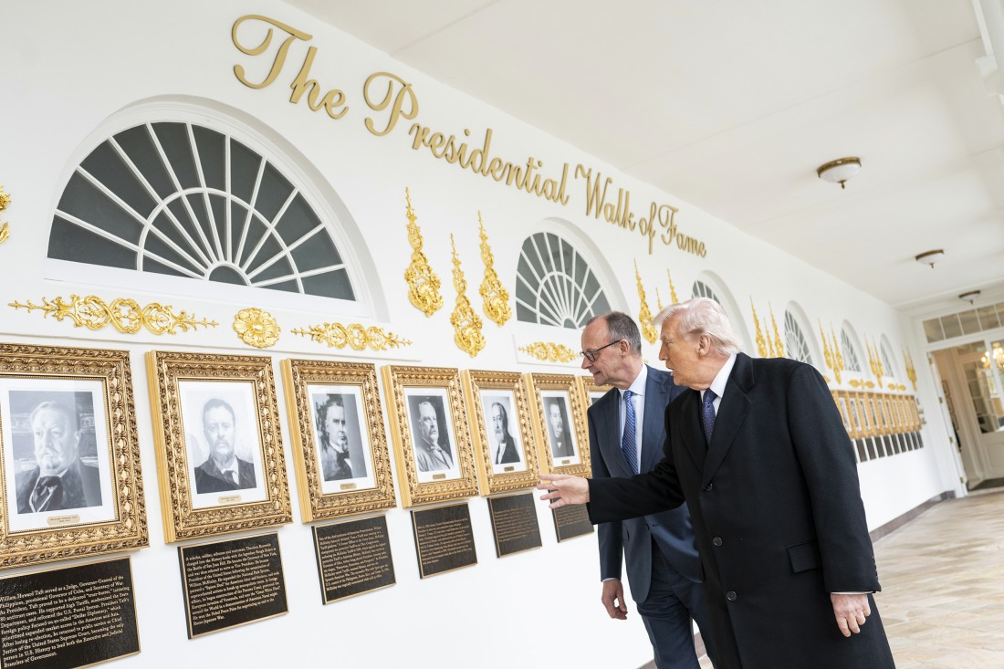 Here are some photos of Donald Trump at the White House on Tuesday. He welcomed Germany’s Chancellor Friedrich Merz. There are photos of Trump showing Merz that ghastly Walk of Fame “display” outside of the Oval Office. Trump doesn’t even realize that all of the other world leaders are laughing at him and his tacky style (among other things). During the Oval Office meeting, Dementia Don got “confused” for the millionth time. He declared that his father, Fred Trump, was born in Germany. He was not. Fred Trump was born in New York.