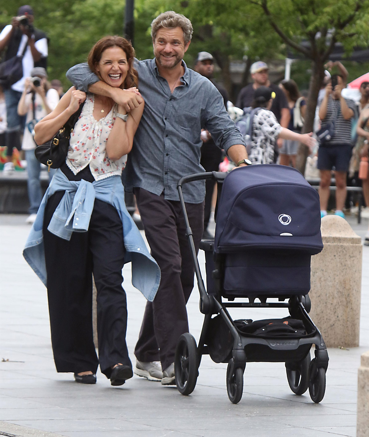 Katie Holmes and Joshua Jackson are shown filming Happy Hours in late July and early August in New York City. Credit: Jose Perez/MediaPunch/Diamond/Backgrid. Photos from the Scream 7 premiere credit: Jeffrey Mayer/Avalon