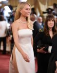 I don’t understand the side slits on her dress. Just because you can doesn’t mean you should. The illusion netting cheapens the look. Would have been far more elegant if they just sewed up the sides and made it a simple, beautifully tailored, gown. The ivory color is not doing her any favors either.