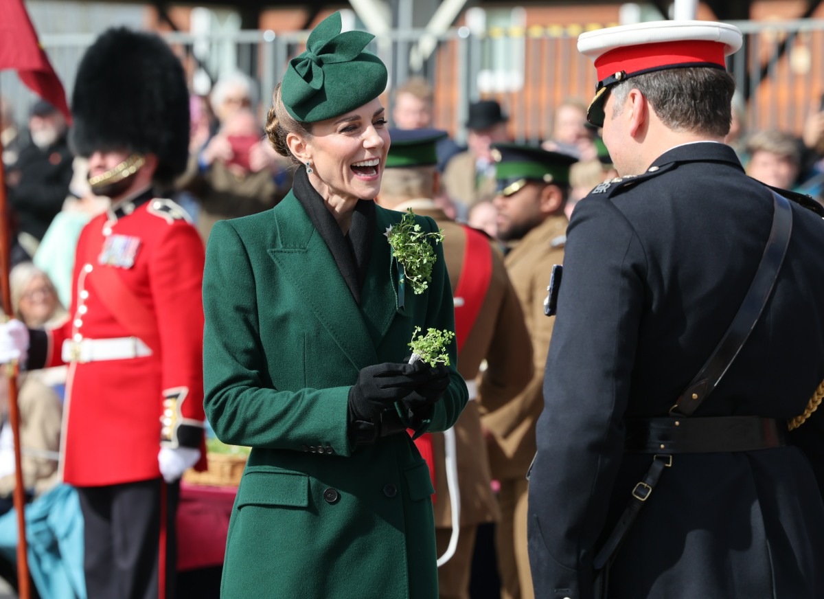 - Catherine, Princess of Wales attends The Irish Guards’ St Patrick’s Day Parade in Mons Barracks, Aldershot Featuring: Catherine, Princess of Wales Where: Aldershot, United Kingdom When: 17 Mar 2026 Credit: Cover Images