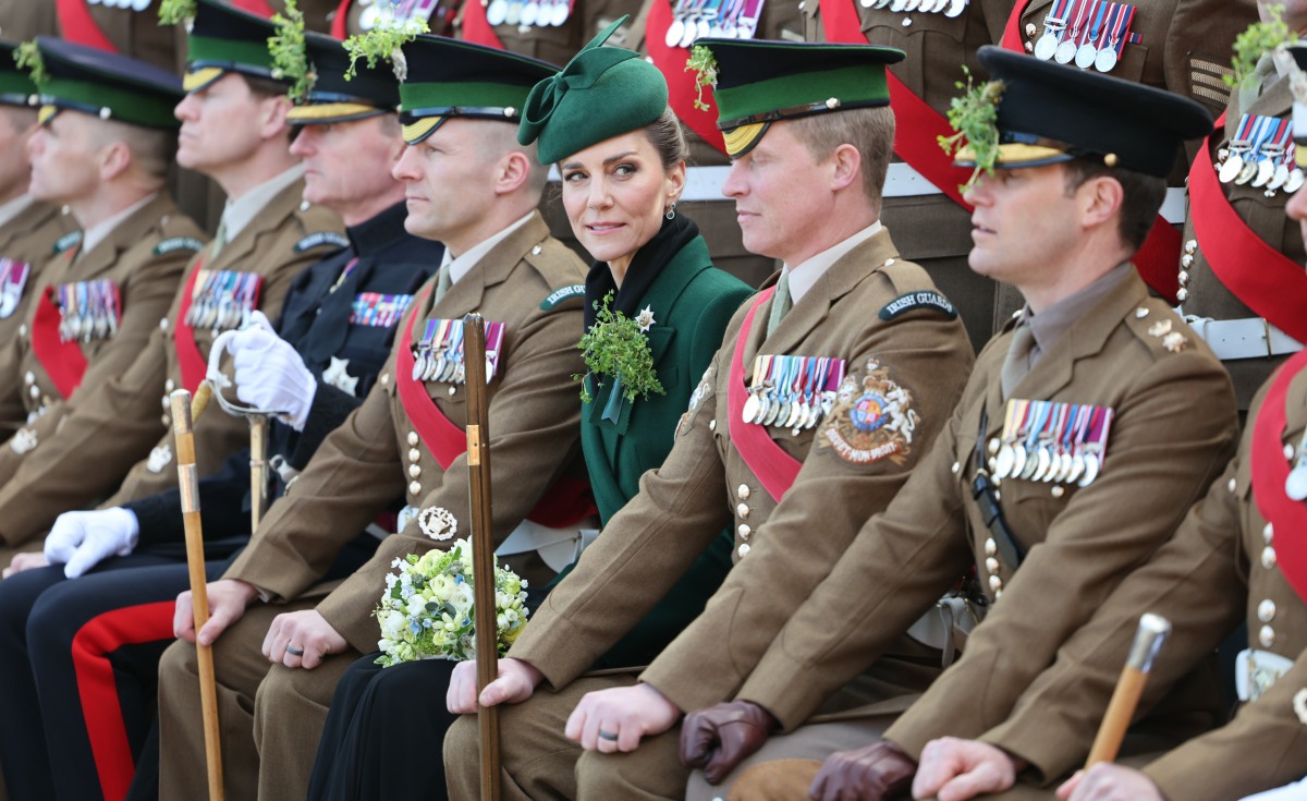 - Aldershot, UNITED KINGDOM Catherine, Princess of Wales attends The Irish Guards’ St Patrick’s Day Parade in Mons Barracks, Aldershot. Pictured: Catherine, Princess of Wales, Kate Middleton BACKGRID USA 17 MARCH 2026 BYLINE MUST READ: Zak Hussein / BACKGRID USA: +1 310 798 9111 / usasales@backgrid.com UK: +44 208 344 2007 / uksales@backgrid.com *UK Clients – Pictures Containing Children Please Pixelate Face Prior To Publication*