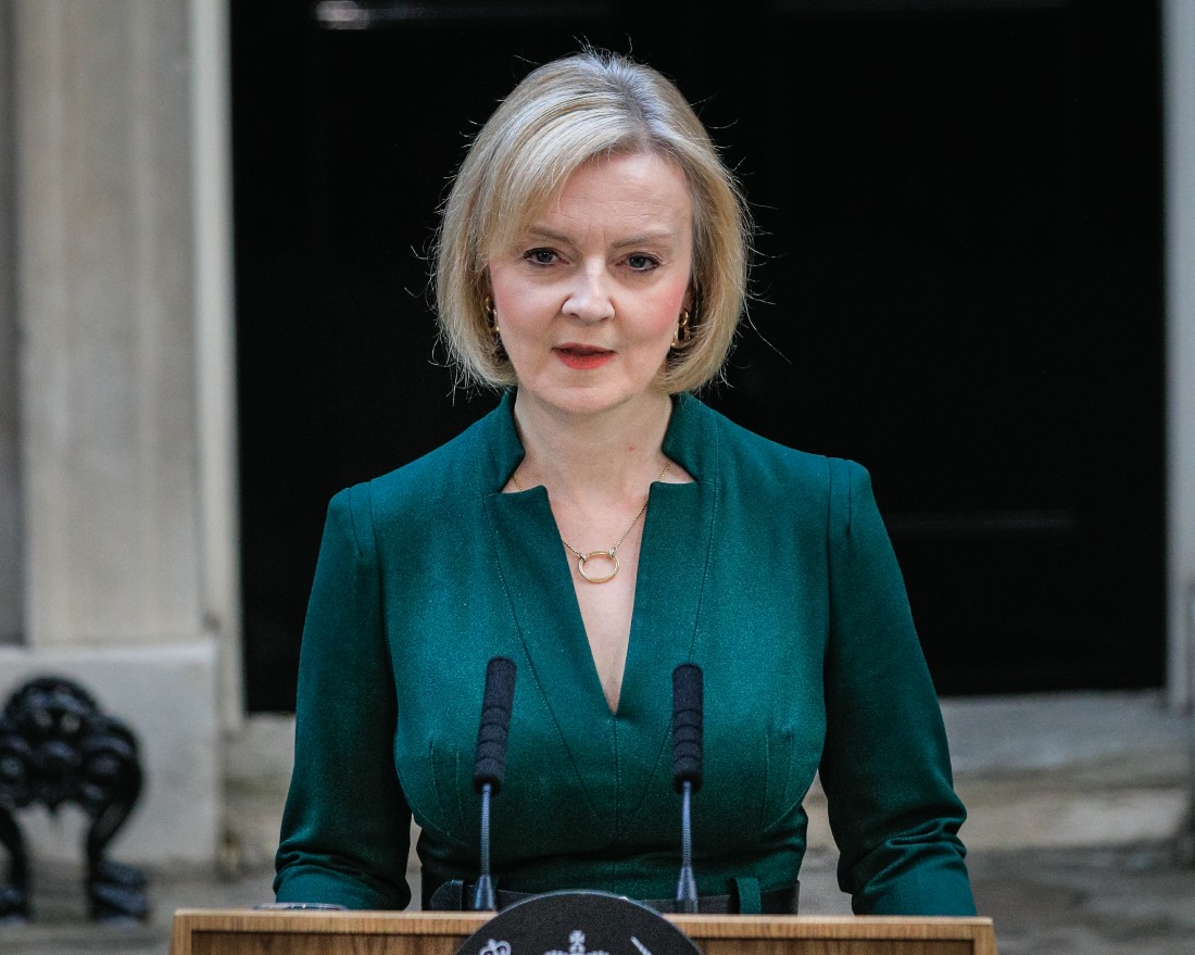 - London, UK, 25th Oct 2022. Liz Truss, British Prime Minister, during her final statement in Downing Street before going to Buckingham Palace to see King Charles III. Later today, Rishi Sunak will then become the new British Prime Minister.,Image: 733089722, License: Rights-managed, Restrictions: , Model Release: no, Credit line: Imageplotter / Avalon