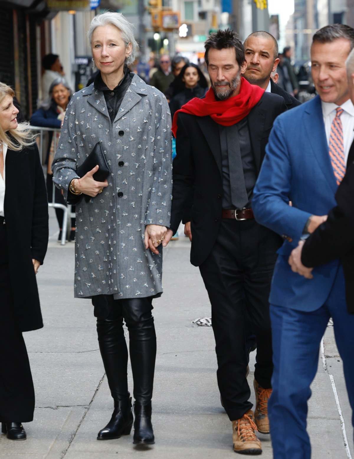 Anyway, I think I knew this from seeing their photos before now, but seeing them walk side-by-side on the street, it’s suddenly very obvious that Alexandra is taller than him. Google says Keanu is 6’1”, so Alexandra is quite statuesque, and it’s not just her boots (the heel on those boots isn’t even that big). Keanu is such a king – loving a cool silver-haired lady in her 50s who is taller than him. Goated.