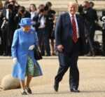 - WINDSOR, ENGLAND – JULY 13: Queen Elizabeth II and President of the United States, Donald Trump inspect an honour guard at Windsor Castle on July 13, 2018 in Windsor, England. Her Majesty welcomed the President and Mrs Trump at the dais in the Quadrangle of the Castle. A Guard of Honour, formed of the Coldstream Guards, gave a Royal Salute and the US National Anthem was played. The Queen and the President inspected the Guard of Honour before watching the military march past. The President and First Lady then joined Her Majesty for tea at the Castle.