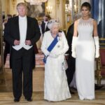 - Queen Elizabeth II stands with US President Donald Trump and his wife, Melania, in the Grand Corridor during their visit to Windsor Castle in Berkshire.