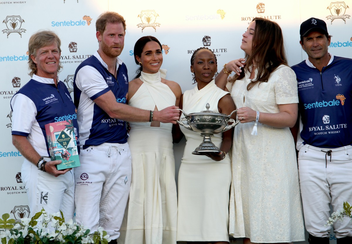 - The Duchess of Sussex presents the trophy to her husband, the Duke of Sussex after his team the Royal Salute Sentebale Team defeated the Grand Champions Team, in the Royal Salute Polo Challenge, to benefit Sentebale, at The USPA National Polo Center Featuring: Prince Harry, Duke Of Sussex and Meghan, Duchess Of Sussex Where: Wellington, Florida, United States When: 12 Apr 2024 Credit: PA Images/INSTARimages **NORTH AMERICA RIGHTS ONLY**