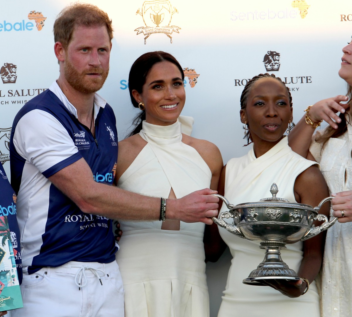 - The Duchess of Sussex presents the trophy to her husband, the Duke of Sussex after his team the Royal Salute Sentebale Team defeated the Grand Champions Team, in the Royal Salute Polo Challenge, to benefit Sentebale, at The USPA National Polo Center Featuring: Prince Harry, Duke Of Sussex and Meghan, Duchess Of Sussex Where: Wellington, Florida, United States When: 12 Apr 2024 Credit: PA Images/INSTARimages **NORTH AMERICA RIGHTS ONLY**