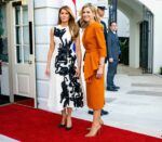 I’m also including photos of Donald and Melania with the Netherlands’ King Willem-Alexander and Queen Maxima. The king, queen and Dutch prime minister are visiting Washington this week and they had a photocall yesterday. Last year, Maxima had a small controversy with another Trump photocall – in the video from the event, you could see Maxima briefly mimicking (if not mocking) Trump’s ugly mouth. He must not have been aware of it. Mel’s dress looks like a Rorschach test.