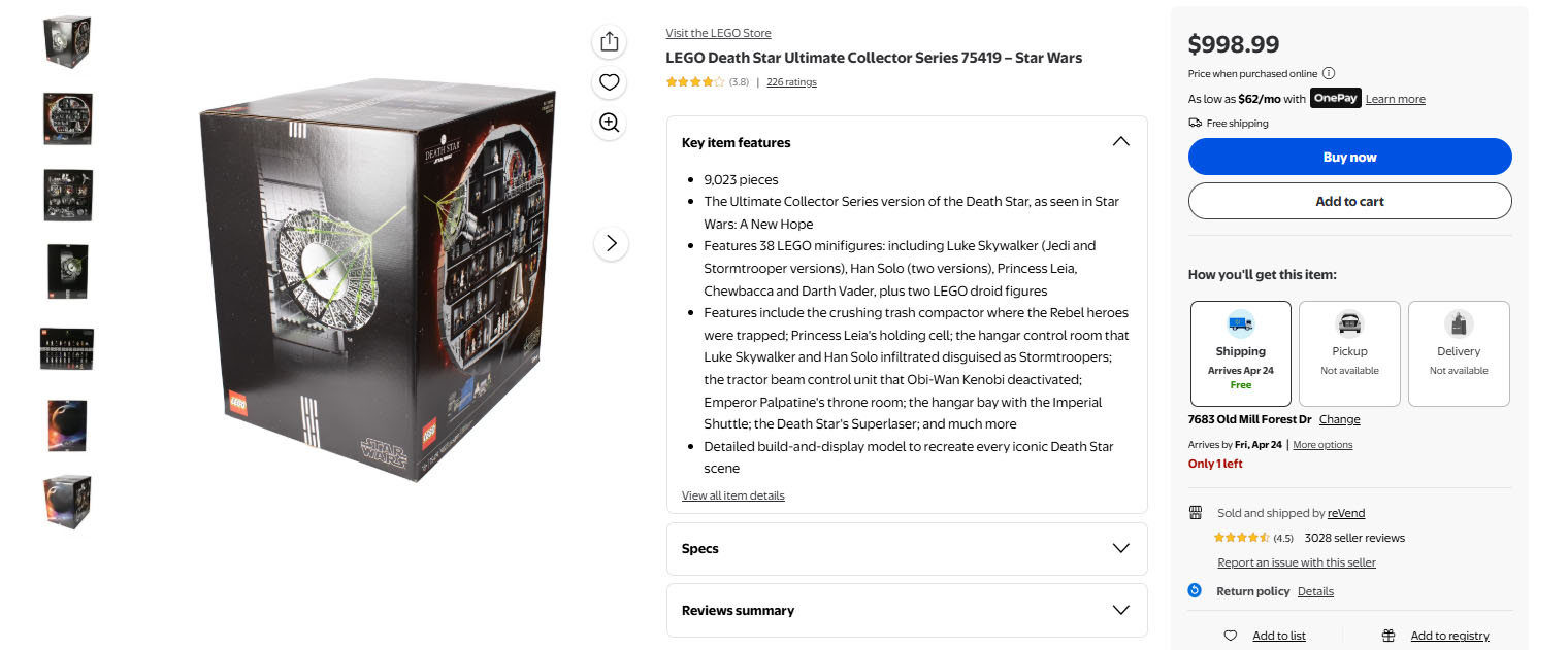 Lego kits can sell for hundreds of dollars, with a Lego Death Star, for example, posted at $999.99.