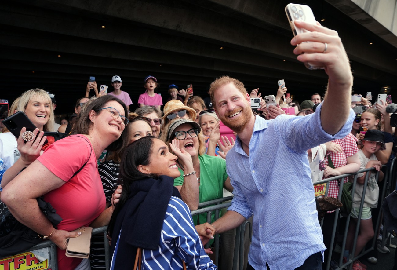 - The Duke and Duchess of Sussex pose for a selfie photo with wellwishers at Man O’War Steps, next to the Sydney Opera House, before taking part in a sailing event with members of Invictus Australia in Sydney Harbour, on day four of the royal trip to Australia. Featuring: Harry, Duke of Sussex and Meghan, Duchess of Sussex Where: Sydney, Australia When: 17 Apr 2026 Credit: PA Images/INSTARimages **NORTH AMERICA RIGHTS ONLY**