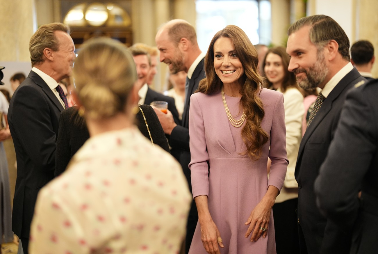 People Mag says that Kate wore the late queen’s three-strand pearl necklace at this palace event, but I think the necklace is actually the one Kate purchased for herself? I honestly don’t know- all three-strand pearl necklaces sort of look alike to me. Her dress is Emilia Wickstead, and all of her Wickstead dresses look alike to me too! So I don’t know if this is new or old.