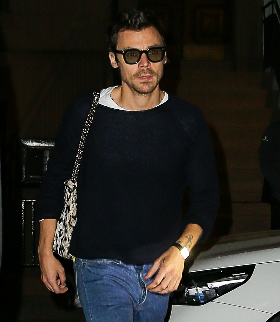 - New York, NY Harry Styles arrives at Lattanzi restaurant for the regular Saturday Night Live dinner in New York, sporting a casual navy sweater, jeans and loafers paired with an animal print bag. Pictured: Harry Styles BACKGRID USA 10 MARCH 2026 USA: +1 310 798 9111 / usasales@backgrid.com UK: +44 208 344 2007 / uksales@backgrid.com *UK Clients – Pictures Containing Children Please Pixelate Face Prior To Publication*