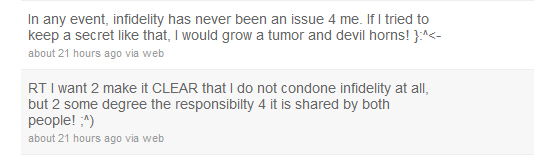 Bottomline: he is totally screwing with a part of his fanbase that might be women who’ve been cheated on. That’s bad business.