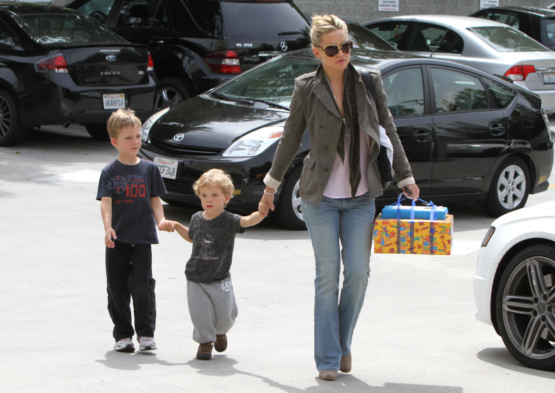 On Saturday morning, Kate Hudson took her adorable son Ryder to a birthday party in Studio City. While the busy, now single actress is usually hard at work, she took the time to pick up one of her 6-year-old son’s friends along the way. Presents in tow, Kate looked happy with Ryder, who came out of the birthday bash with a fun mask on and a goodie bag in his hand.
